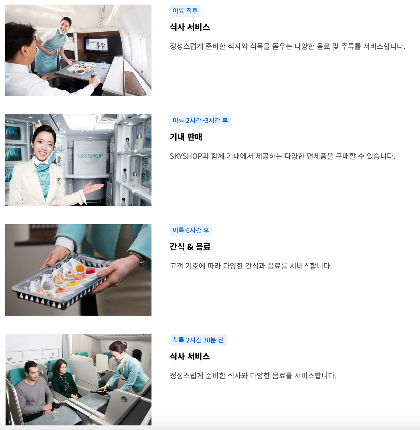 대한항공은 스카이샵이라는 기내 면세샵을 운영하고 있습니다.